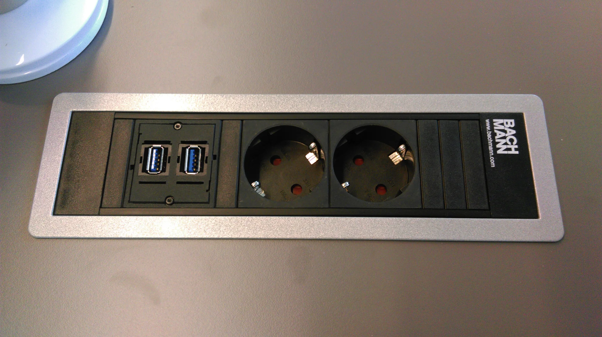 Bijvoorbeeld een 25 mm dik blad van 180 x 80 cm of 160 x 80 cm in melamine, HPL, fineer of meubellinoleum. Tevens kan er in het bureaublad rekening gehouden worden met kabelmanagement.