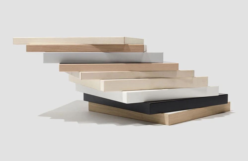 De bureaubladen worden gemaakt van 18/22/25/28 mm MDF met de rand in de kleur van de toplaag. Of van berken multiplex in 21/24/27/30 mm.